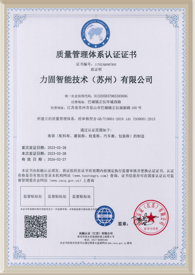 我司現已獲得GB/T19001-2016/ISO 9001:2015質量體系認證及江蘇省高新技術企業認證,“力固”品牌聲譽日隆,有口皆碑。